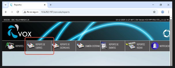Seleccionar Reporte de cierres.