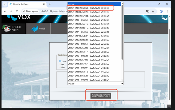 Elegir el turno correspondiente y presionar Generar reporte.