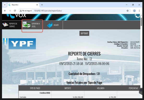 De esta forma, las lecturas de surtidores y la rendicion final quedaran igual que la VOX.