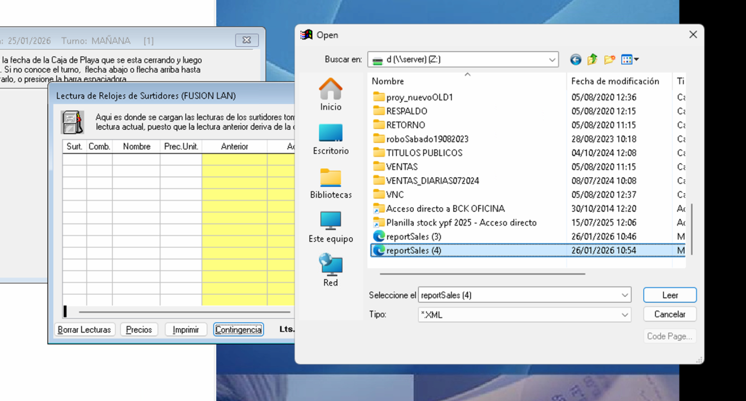 Objetivo: cargar lecturas de surtidores y consumos internos YPF en ruta desde los reportes generados por VOX.